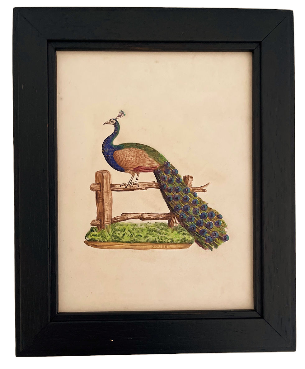 Small English Embossed Peacock Watercolour Circa 1850