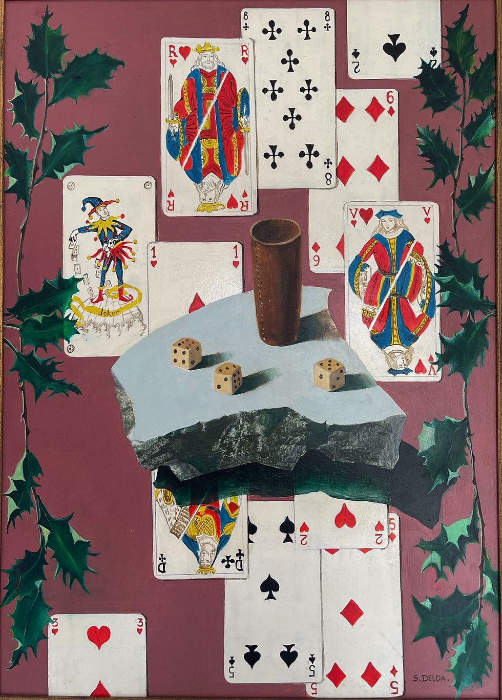 Large French Oil Painting Titled Jeux by Simone Delda, '87